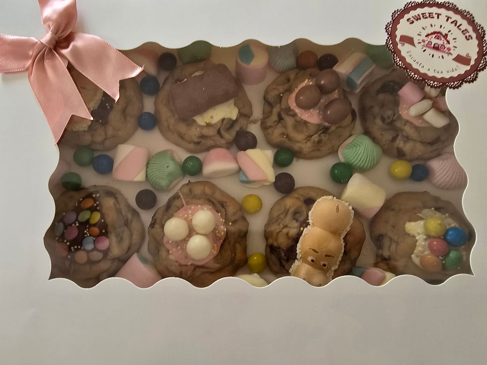 Já provaste os nossos Cookies? Quando Provares não vais querer outros! São gordinhos (150 gr) e cada topping ou recheio é feito pela Sweet Tales 😋! Nada de industrial! Se quiseres para os teus eventos podemos também fazer os minis! Assim como o teu bolo de aniversario decorado e personalizado! Fala conosco!